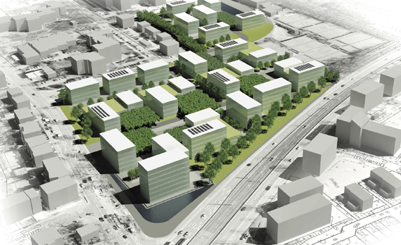 Entwicklung eines Gewerbe Campus an der Universitätsstraße in Bochum - Die städtebauliche Konzeption ist so angelegt das sie auf noch nicht feststehende Nutzungsmix und Nutzungsänderungen reagieren kann ohne die gewünschte urbane Qualität im Quartier zu verlieren.